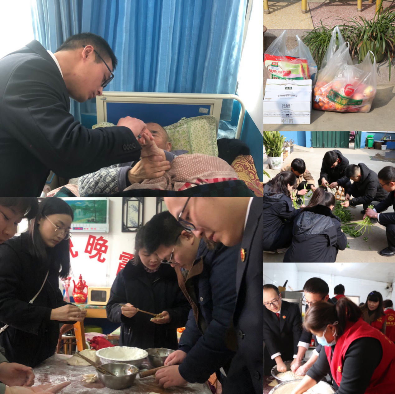 干警们陪老人聊天、为他们打扫卫生、剪指甲、包饺子,并送上水果、牛奶等慰问品,一声声祝福、一份份礼物,将春天般的温暖带给这里的每一位老人。在给敬老院的老人们带去温暖和关爱的同时,干警们对敬老爱老的优良传统有了更深的理解,他们用行动展示了人民检察关爱人民的良好形象。