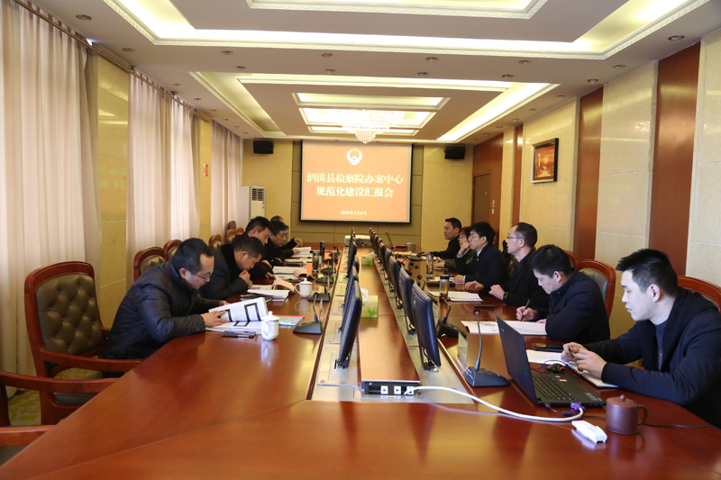 殷检一行首先实地察看了即将建成的检察为民服务中心和计划建设的办案中心场地,仔细了解办公办案功能房设置、设备配置等情况。在随后召开的汇报会上,院许川副检察长报告了院办案中心建设的前期筹备情况,张耀阳检察长重点报告了院为民服务中心、办案中心建设的资金保障和场所保障情况,勾勒了建设的预期效果。后市院法警、技术、行装部门结合我院建设方案及实地察看情况先后反馈了改进意见,殷检对泗洪县检察院的建设方案和前期建设情况给予了充分肯定。殷检强调了开展办案中心建设的重要意义,并从标识规范、质量上乘、外观大方等方面就我院建设工作提出了三点意见。