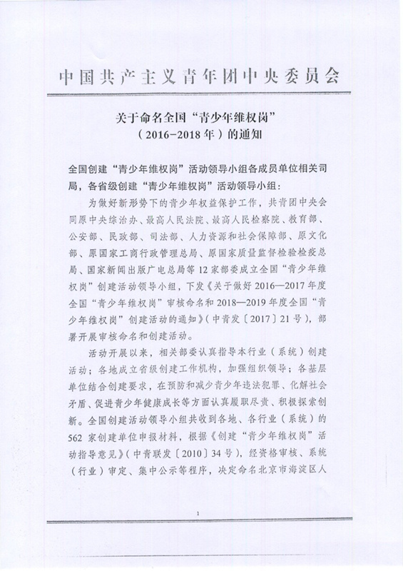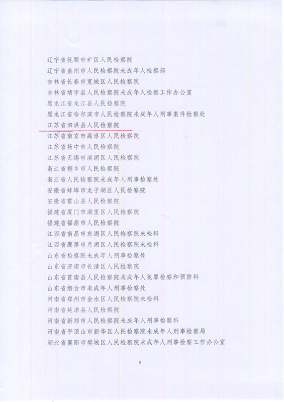 热烈祝贺泗洪县检察院获得“全国青少年维权岗”荣誉称号